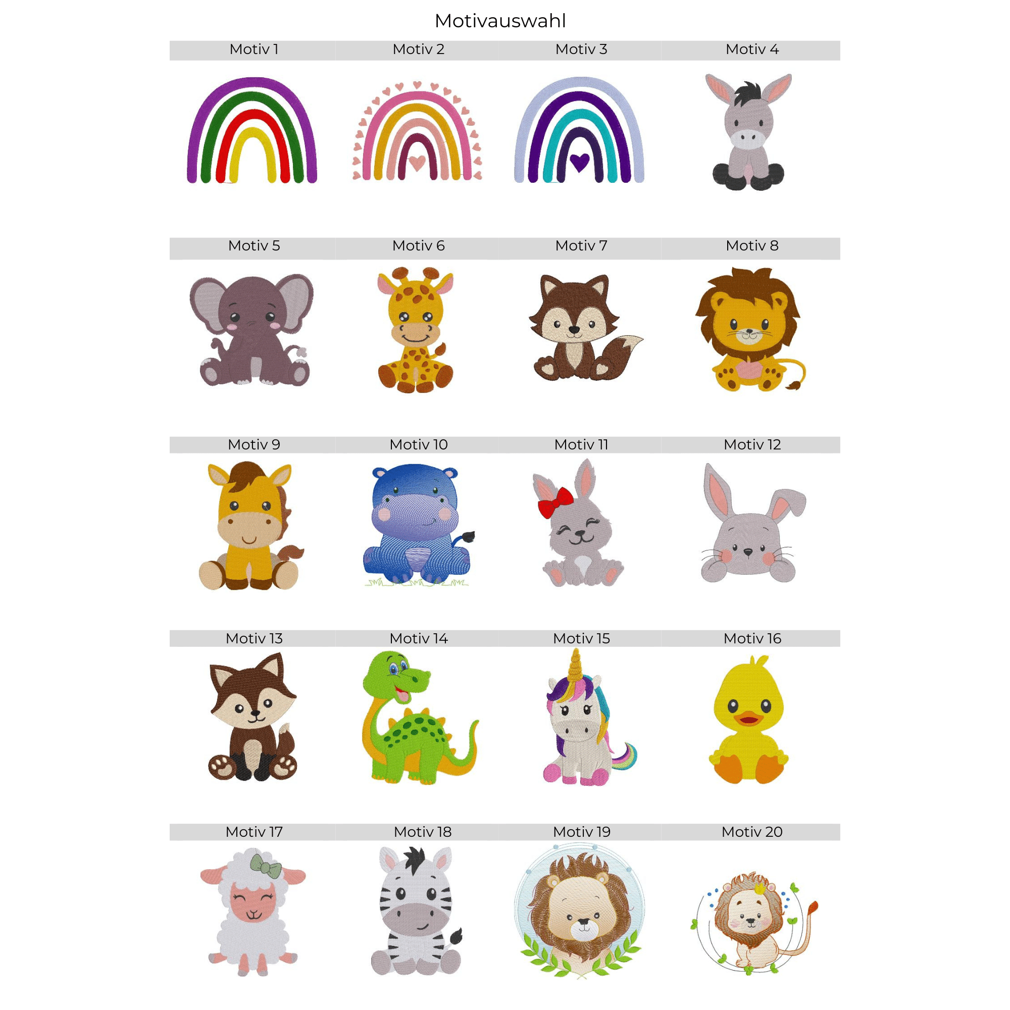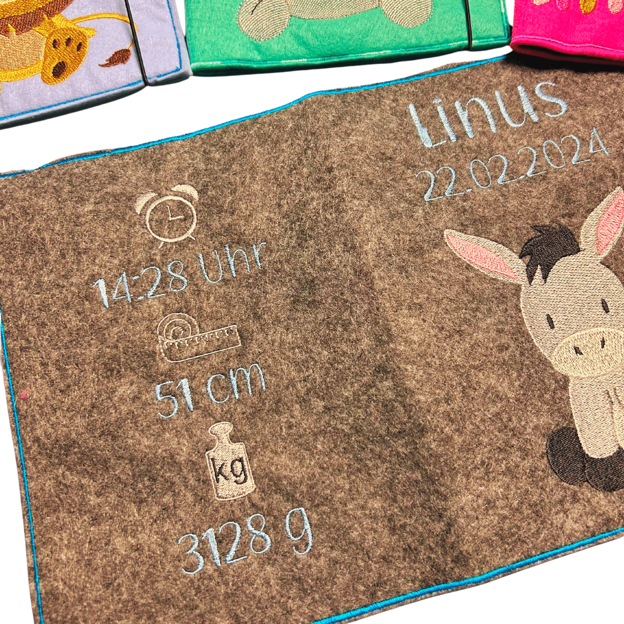 - ✔️ Bestickt mit Wunschmotiv, Name & Geburtsdatum