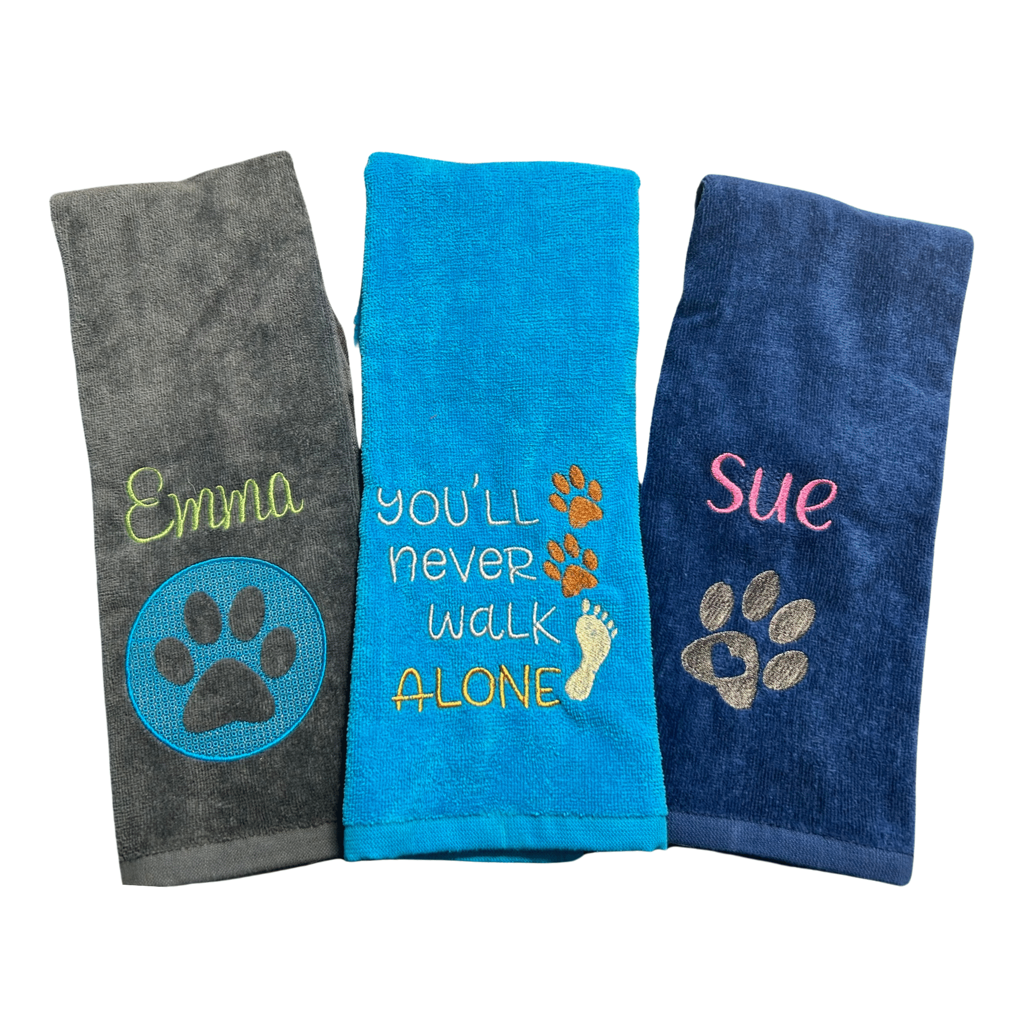 Damit dein Handtuch so einzigartig ist wie dein Hund, kannst du es ganz individuell gestalten. Du hast die Wahl zwischen verschiedenen Farben, Motiven und Stickoptionen – so wird dein Handtuch genau so, wie du es dir wünschst. Hier sind deine Möglichkeiten im Überblick: