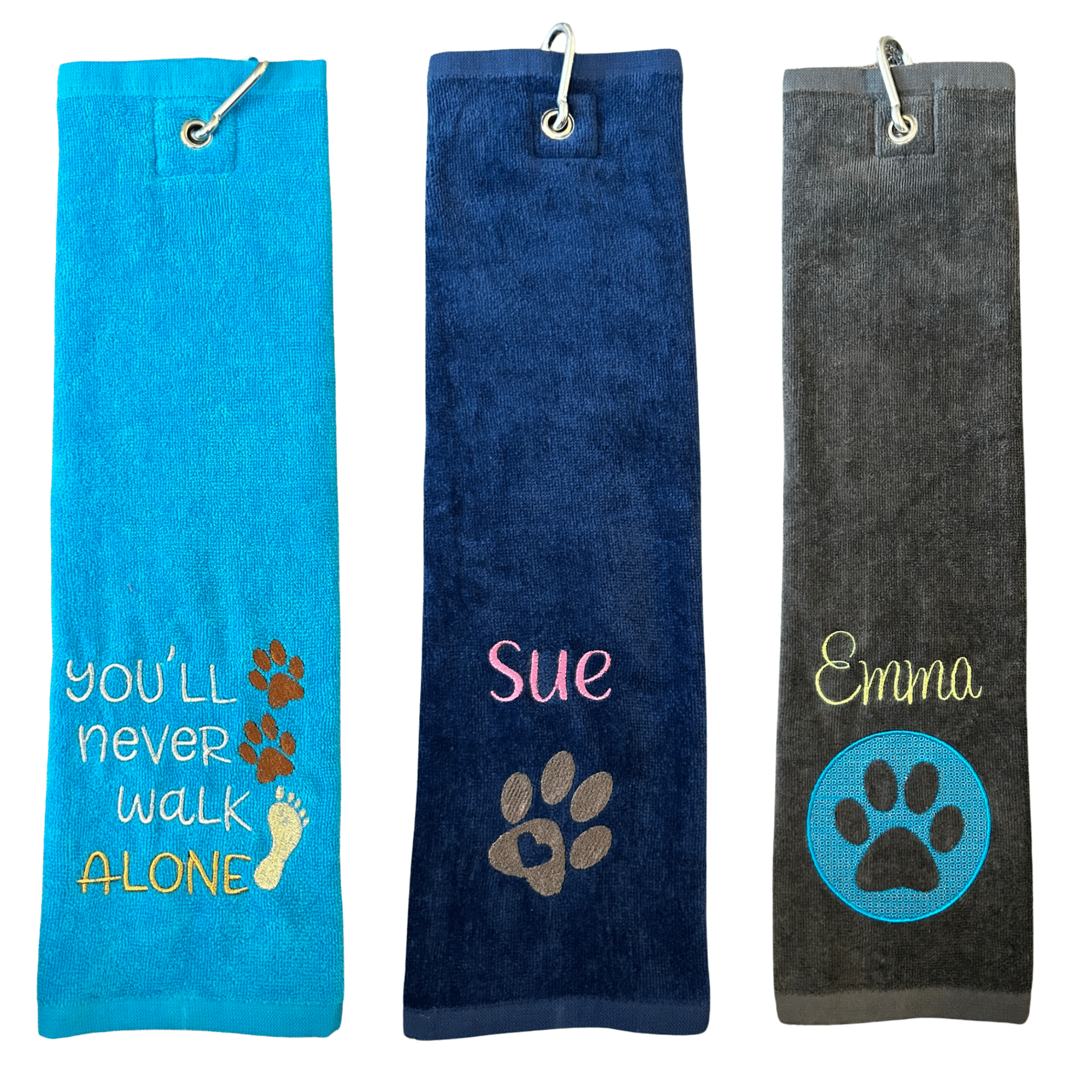 Praktisches & personalisiertes Pfotenhandtuch für Hunde – saugstark, weich & individuell bestickt. Mit Karabiner für unterwegs. Ideal nach Regen & Matsch!