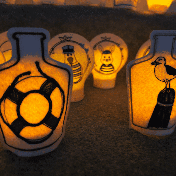- ✔️ Teelichtcover mit maritimen Stickmotiven